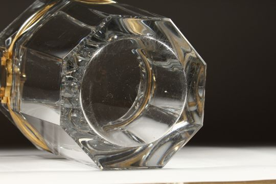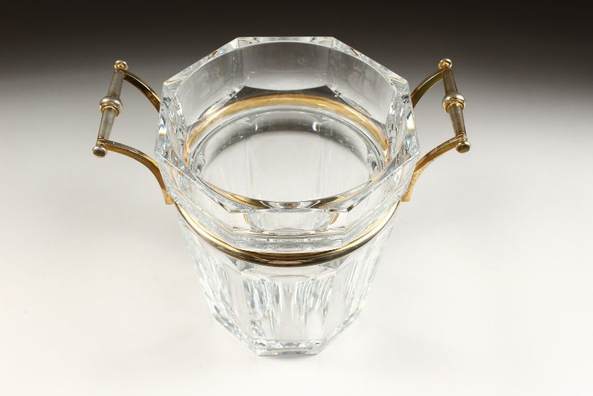 A GOOD LARGE BACCARAT OCTAGNONAL SHAPED, CUT GLASS WINE COOLER, with gilt metal handles.