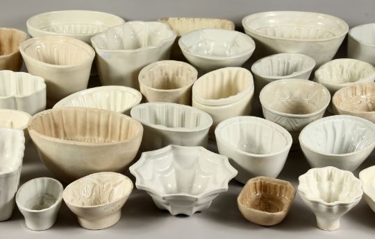 A COLLECTION OF THIRTY FIVE LATE VICTORIAN CERAMIC JELLY MOULDS.