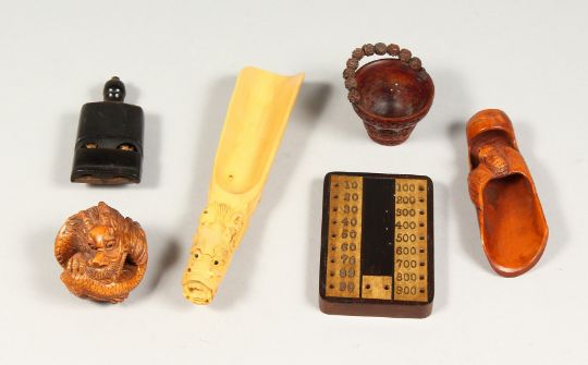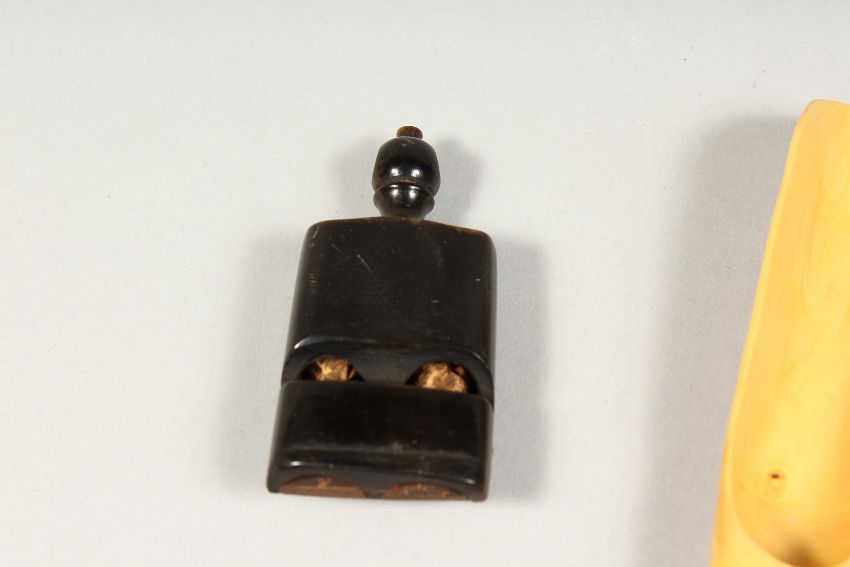 SIX VARIOUS SMALL PIECES OF TREEN including a whistle