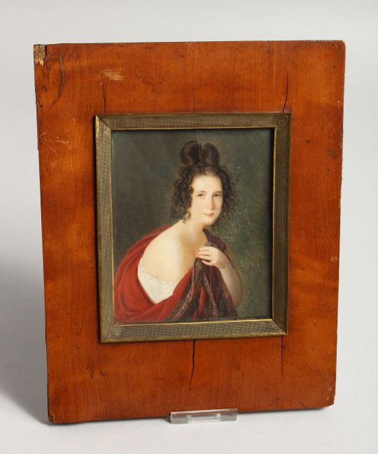 A 19TH CENTURY PORTRAIT MINIATURE OF A YOUNG LADY