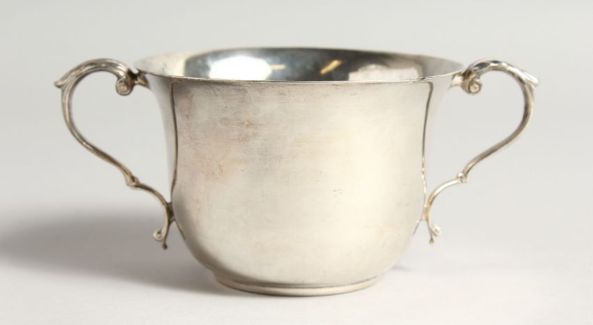 A PLAIN TWO HANDLED SILVER PORRINGER