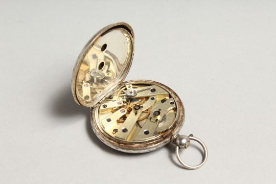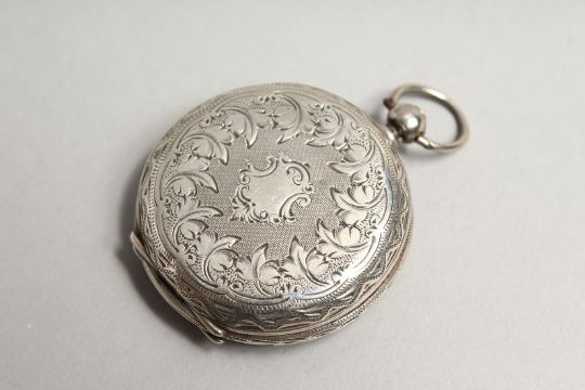 A LADIES VICTORIAN ENGRAVED SILVER FOB WATCH