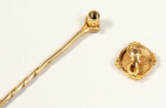 A GOLD AND DIAMOND TIE PIN