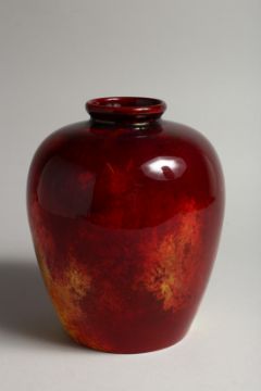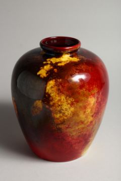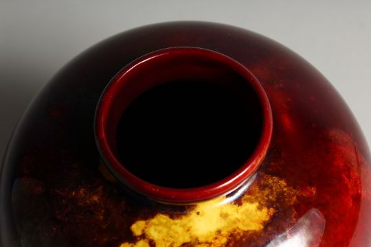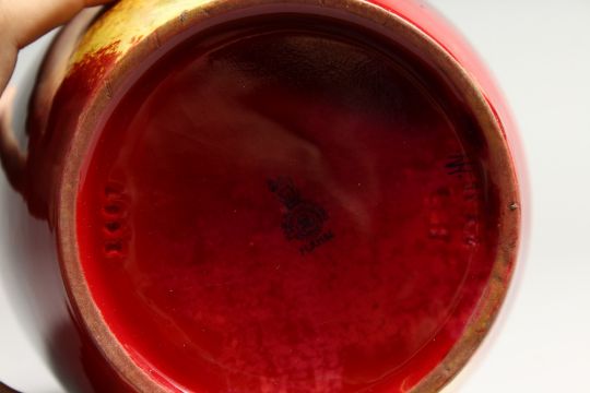 A ROYAL DAULTON FLAMBE GLAZED BULBOUS SHAPED VASE, initialled H N.