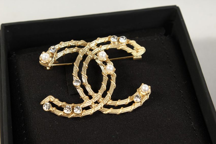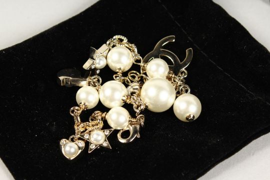 THREE DECORATIVE PIECES AFTER CHANEL, brooch, necklace, and bracelet.