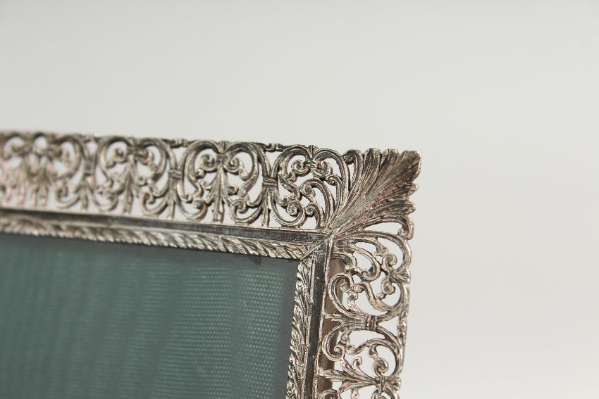 A PIERCED SILVER PHOTOGRAPH FRAME
