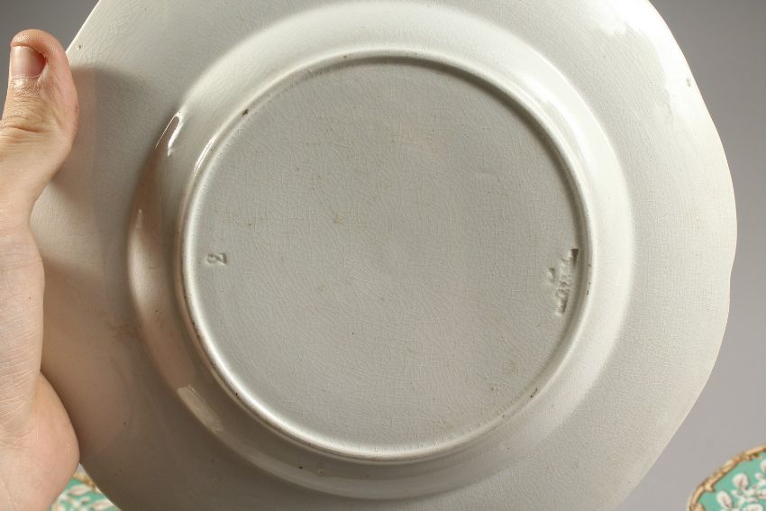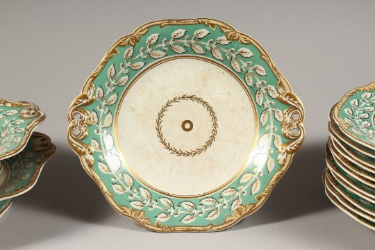 A WEDGWOOD PEARLWARE PART DINNER SET comprising a pair of rectangular comports, 11 circular comport,10ins, 11 plates 9.5ins (14 pieces).