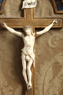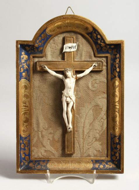 A SMALL 18TH CENTURY CARVED IVORY CORPUS CHRISTI.