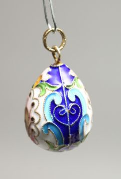 A RUSSIAN SILVER AND ENAMEL EGG PENDANT