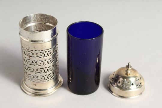 A PIERCED CIRCULAR SUGAR CASTER with sapphire blue liner.