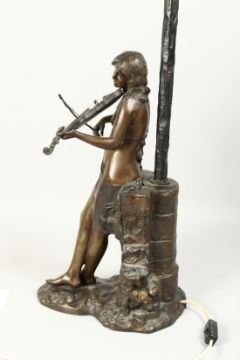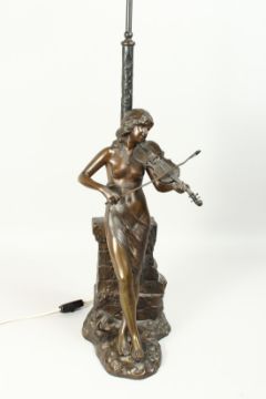 THE VIOLA PLAYER. A semi clad young lady playing a viola standing beside a brick wall.