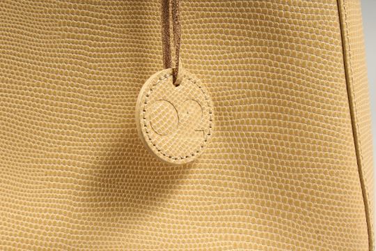 A DEBENHAMS BEIGE HANDBAG with dust cover.