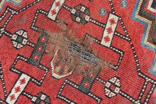 A SHIRAZ RUG, with three large central medallions, in a narrow border.