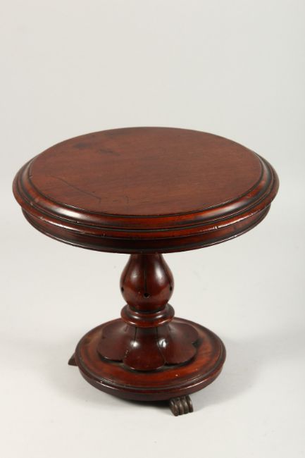 A GOOD LARGE 19TH CENTURY APPRENTICE'S TILT TOP CIRCULAR TABLE, centre columns on circular base.