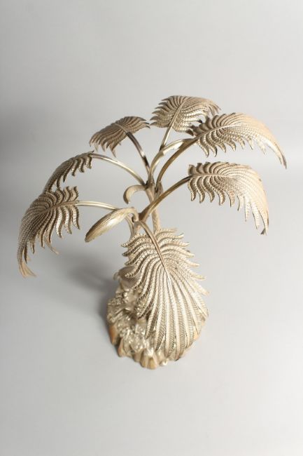 A VERY GOOD PLATED CENTREPIECE, a stag standing beneath a palm tree.