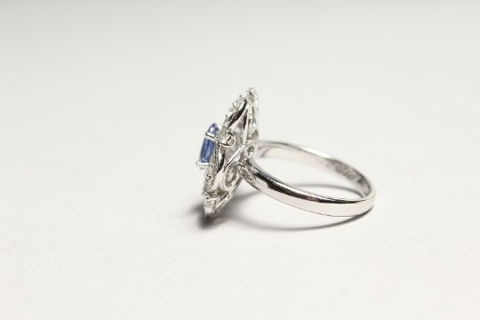 A GOOD 18CT WHITE GOLD, DIAMOND AND SAPPHIRE RING