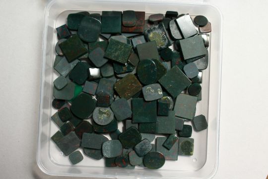 A BOX OF BLOODSTONE STONES