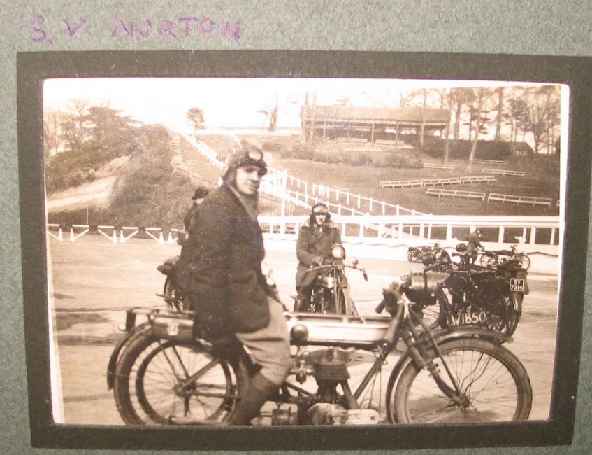 [MOTORBIKES] collection of small format amateur photos of motorcycles and their owners, some motor racing, scenes at Brooklands, ca. 1930's, in an album