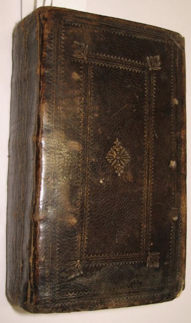 [BAILY (Lewes) The Practice of Piety, 12mo, title with woodcut surround, pp. [18] 701 [1], foot of pp. 15/16 snagged, loss of margin to pp. 233-6, pp. 285/6 with sizeable hole in thetext, pp. 363/4 torn into, pagination jump pp. 558/561 but register & text continuous, register finishes at Gg[11], i.e. lacking last blank leaf, contemporary black morocco, ties gone, [London] Andrew Cooke, 1637