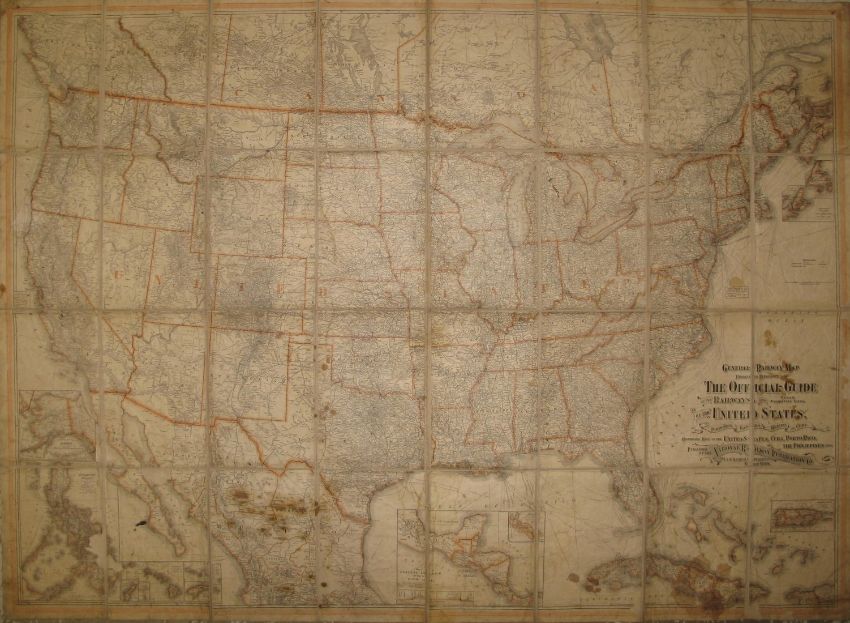 [MAP - AMERICA] large linen-backed folding Railway Map of the United States, copyrighted 1902-1918, 110 x 130 cms