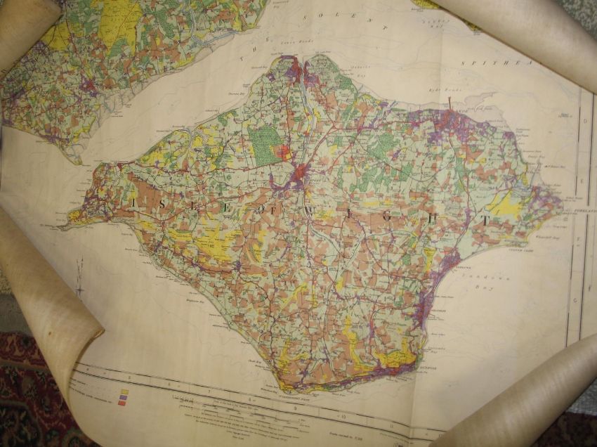 [MAPS] a rolled and varnished C. & I. Greenwood map of WILTSHIRE; a hand-col'd Land Utilisation Survey 1931-2 of the ISLE of WIGHT; the 1933 reproduction of Taylor's 1759 Map of Hampshire; Nightingale's New Survey Map of Devon, Somerset, Dorset & Wiltshire, col. varnished; all linen-backed & rolled. (4)