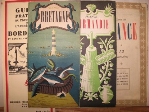 [MAPS] 4 folding tourist maps of France, c.1950; Normandy, Brittany, France, & Bordeaux (4)