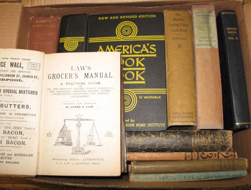 [COOKERY] LAW's Grocer's Manual, covers & inner hinges selotaped, Liverpool, [1895]; FARMER (Fannie) The Boston Cooking School Cook Book, 8vo, illus., clo., New Edn., 1928; & 9 other books (11)