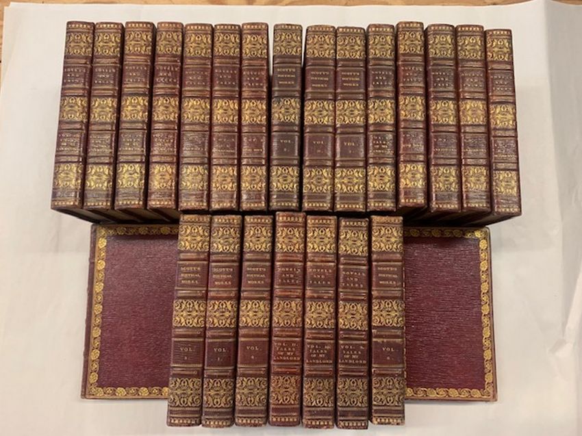 [BINDINGS] SCOTT (Walter) The Poetical Works in Eight Volumes [and] Novels and Tales, 24 vols in all, contemporary red straight-grain morocco gilt, Edinburgh, 1822, 1821 (24)