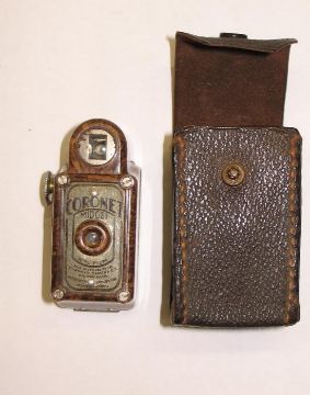 CORONET MIDGET CAMERA, bakelite body & leather case.