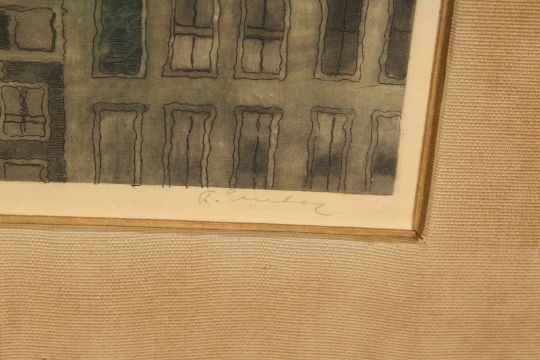 Franz Everbag (1877-1947) A bridge over a canal in Amsterdam, an etching, aquatint, signed and inscribed in pencil, numbered 6/25 , 6.5 x 19 .