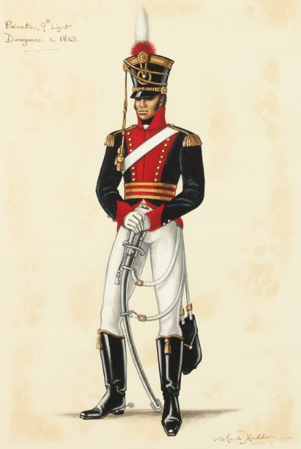Manner of Snaffles, A pair of watercolours of military officers, 12 x 5 , along with a further pair of watercolours of members of the 9th and 11th Light Dragoons regiment, (4).