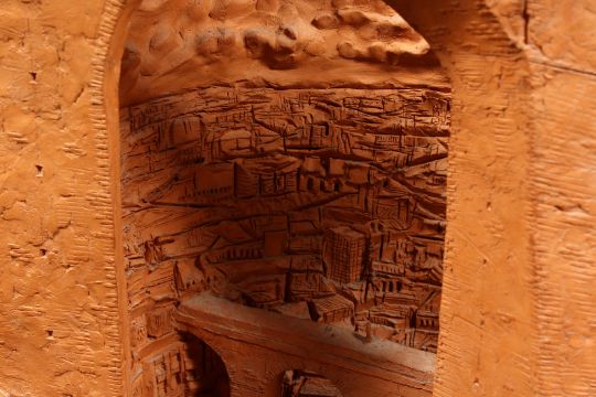 Paul Day (b. 1967) British, figures on a balcony overlooking a classical city, terracotta sculpture, signed and dated 1997 , 21 x 28 x 12 .