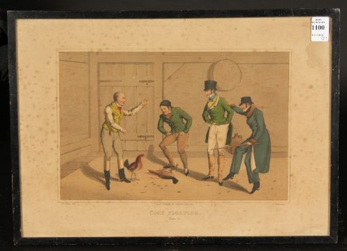 Clark after Alken, A pair of coloured etchings of cockfighting scenes, plate one and plate two. Each 8 x 12 , (2).