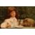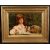 Henry Macbeth-Raeburn (1860-1947) British, a young girl having tea with her newfoundland, oil on panel, 14.25 x 20.75 .