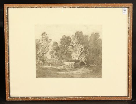 After Thomas Gainsborough, Cattle in a wooded landscape etching with the number 11 in the top left-hand corner within the plate, 10.75 x 13 .