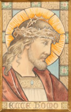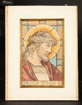 Circle of Henry Holiday, Ecce Homo , stained glass design, watercolour, 5.25 x 3.25 . (unframed).