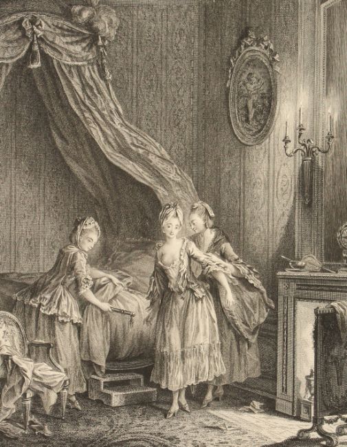 Romanet and Lingee after Freudenberg, Le Lever , Le Coucher and Les Confidences , 18th century engravings, (unframed), (3).