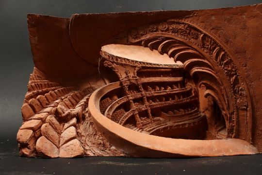 Paul Day (b. 1967) British, A theatre interior, terracotta sculpture, signed and dated 1999 , 10 x 17 x 8 .