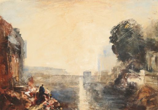 Hercules Brabazon Brabazon (1821-1906) British, after Turner The Dido Building, Carthage , watercolour, signed with initials, with exhibition label verso, 8.75 x 12.25.