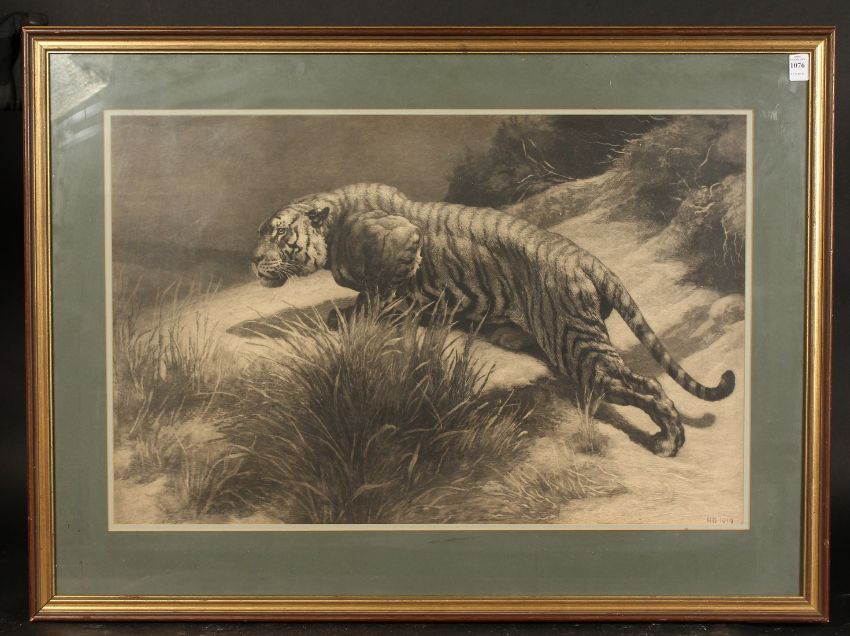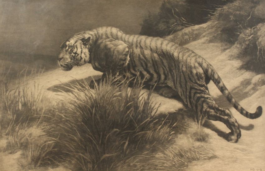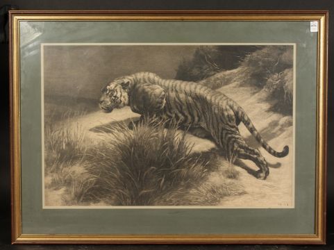 Herbert Dicksee (1862-1942) British, The Startled Tiger , etching, 18.5 x 28.5 .