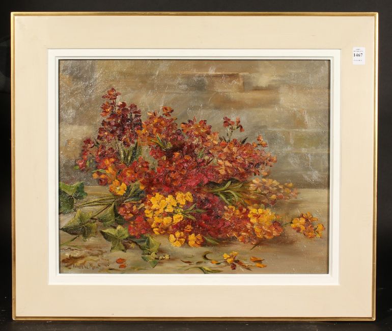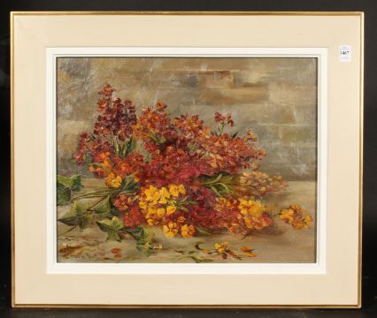 English school, A still life of flowers on the floor, oil on canvas, indistinctly signed, 16 x 20 .