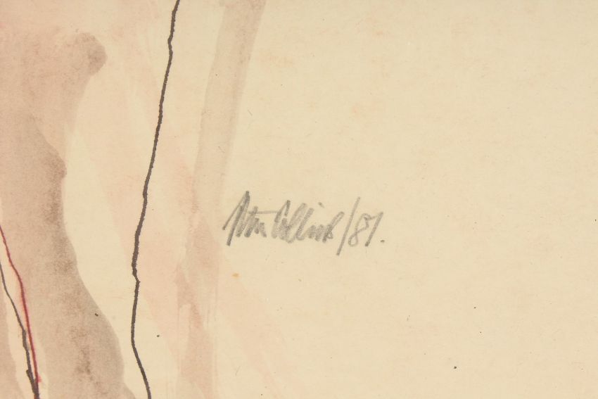 Peter Collins (1923-2002), Standing Nude, ink & wash on paper, 15.75 x 11.75 .