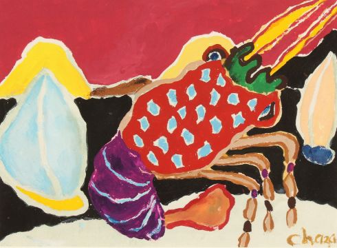 Attributed to Malcolm de Chazal (1902-1981), a study of a lobster on a shoreline, gouache, signed, 10 x 13.5 .