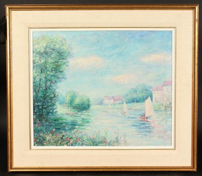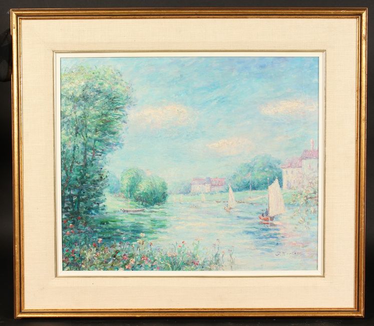 20th century, impressionist scene of sailboats, oil on canvas, signed G. Martens , 20 x 24 .