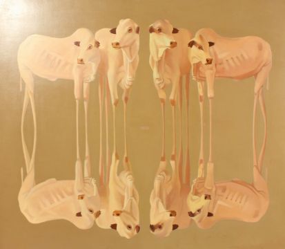 Peter Von Artens (1937-2003) Argentinian. Reflection , oil on canvas, inscribed, and signed, inscribed and dated traced through the reline, 34 x 39 .