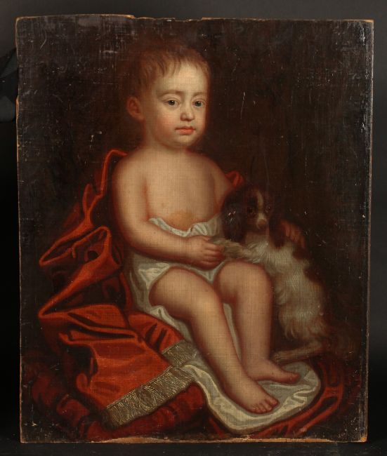19th century English school, A portrait of a young child with his dog, oil on board, 28" x 23".