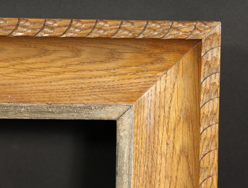 A carved oak frame with silvered inner ornaments, rebate size 24 x 36 , 61cm x 92cm.