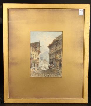 19th century, A pair of watercolour views of continental town scenes, indistinctly signed with monogram, each 9.75 x 6.5 , (2).