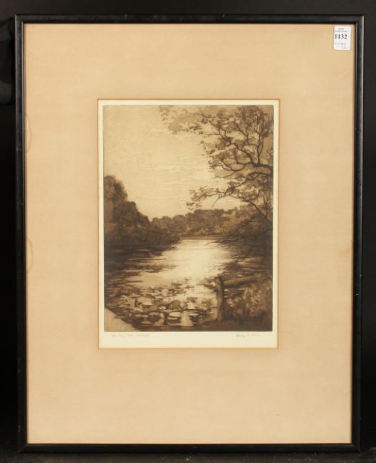 Daisy M Norrie (b.1899) British, Pembroke Castle and another of hilly ponds, etchings, signed and inscribed in pencil, one 13 x 9.25 the other 10.5 x 10.5 , (2).