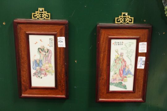 A pair of small Chinese porcelain plaques, framed.